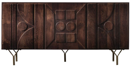 Gallery DirectIn stockThis unusual sideboard is crafted from solid mango wood with a warm deep stain finish which shows the grain of the wood. The doors feature a stunni...