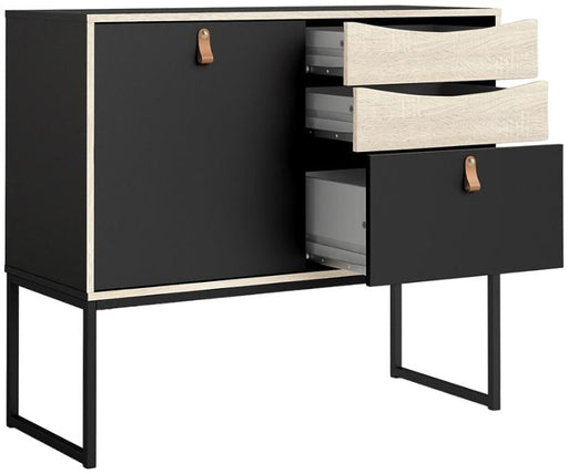Furniture To GoIn stockStubbe Sideboard with 1 Door 3 Drawers in Matt Black Oak The Stubbe range features a striking design with a bold colour contrast. The clean look ma...