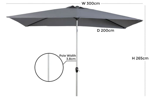 Gallery DirectIn stockThis 200cm x 300cm Parasol offers an unusual rectangular design. It features a tilt and crank mechanism, for easy adjustment of the parasol. The lo...