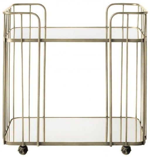 Gallery DirectIn stockAn entertaining essential featuring a toughened glass top and shelf with an art deco styled champagne metal frame, complete with castors so it can ...