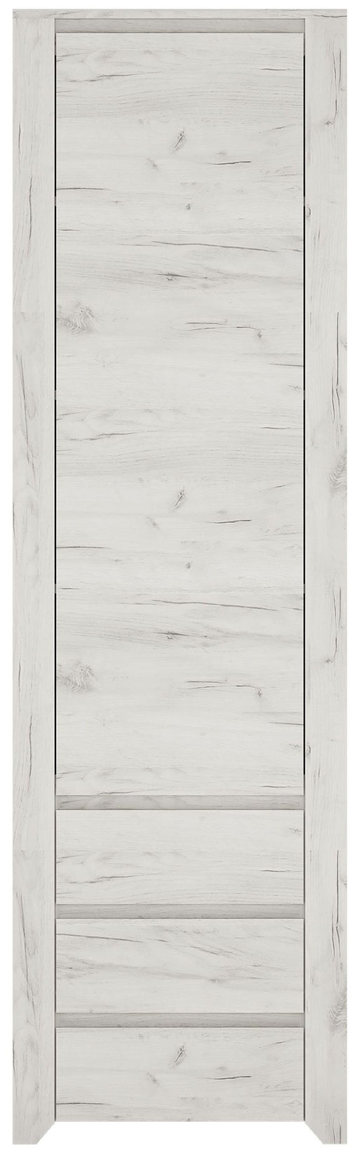 Angel White Oak Tall Narrow One Door 3 Drawer Narrow Cupboard