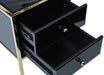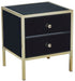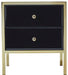 Fenwick Black Glass 2 Drawer Bedside Cabinet - Gold Trim