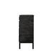 This 4 Drawer Chest is made using Mango solids with mixed timber veneers of Teak-Mahogany-Mindy Ash and Mango which give contrast and make the inlaid pattern stand out. It has a stunning mat black charcoal finish - the different grains in the mixed timbers stand out in the light and catch your eye with this beautiful detail.