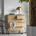 With its cut-out handles on the drawers and beautifully shaped underframe, this lovely chest of drawers offers stunning design. It is Catroned from the finest oak and oak structural veneers where practical, with a lovely natural finish. Dovetail joints on the drawers and finger joints on the corners of the piece, techniques found on high quality cabinetry, give strength and a sense of purpose and tradition to create long-lasting, legacy furniture that can be collected and handed down through generations. Matching pieces available.