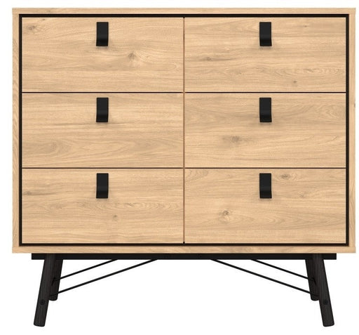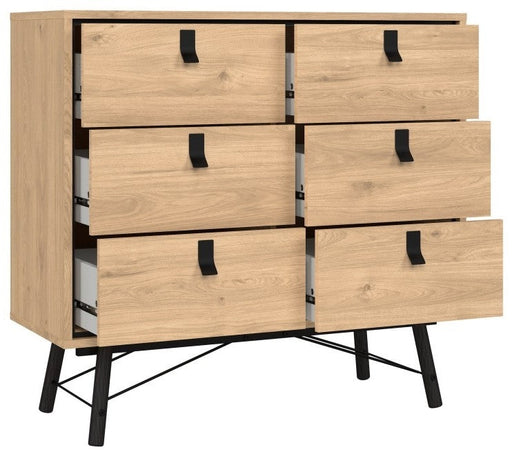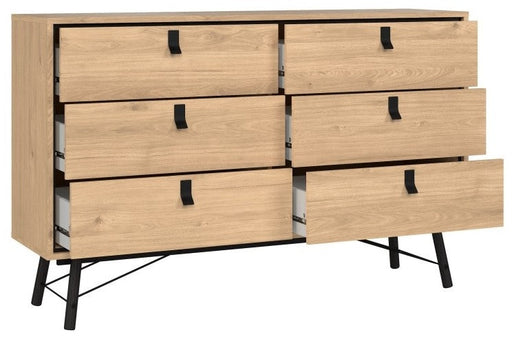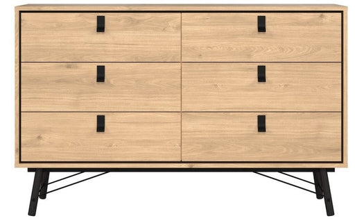 Ry Wide Double Chest of Drawer 6 Drawer in Jackson Hickory Oak