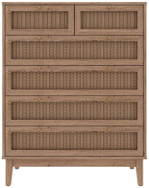 Bordeaux Oak and Faux Rattan Chest of Drawer