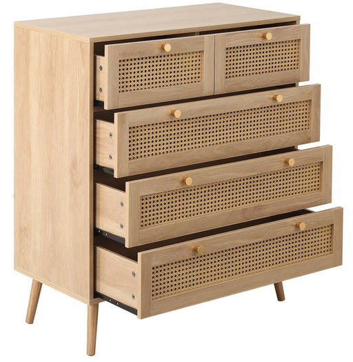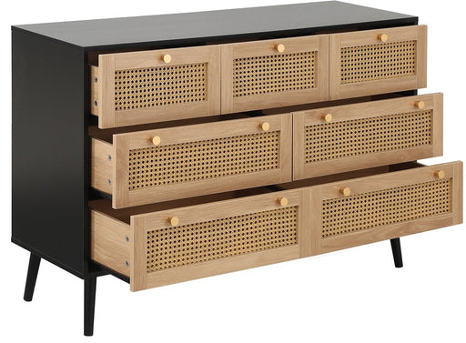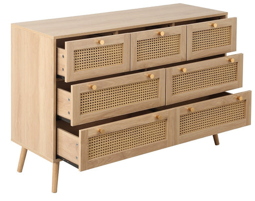 Crolexy Oak Rattan Wide 7 Drawer Chest