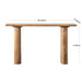 Unusual console table featuring chunky legs and top, with soft flowing curves which soften the look, to create a beautiful sturdy piece. It is crafted from solid mango wood with a natural finish to show the stunning grain of the timber. A coffee and side table are also available.