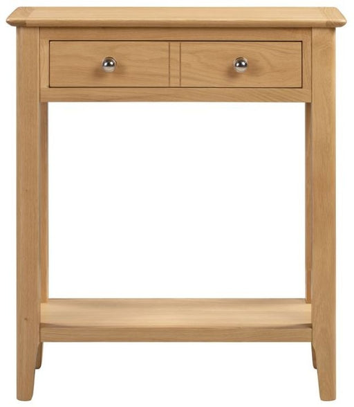 Julian Bowen FurnitureIn stockCrafted from solid oak and oak veneers, the Cotswold Console Table features 2 Drawers and a spacious shelf for storing your keys or winter warmers....