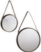 Marston Bronze Leather Hanging Strap Round Mirror (Set of 2) - 40cm-30cm