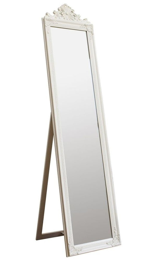 Gallery Direct Wall DecorIn stockChic free standing wood framed cheval with decorative crest in a white painted finish. Dimensions : W 45.5cm x H 179cm Material : Woo...