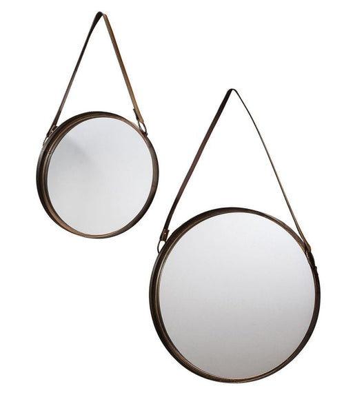 Marston Bronze Leather Hanging Strap Round Mirror (Set of 2) - 40cm-30cm