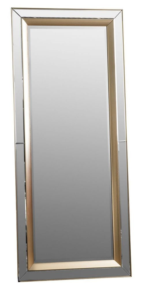 Gallery Direct Wall DecorIn stockA contemporary styled full lenght mirror with bevelled mirror frame and gold inlay. Dimensions : W 69cm x D 3cm x H 158cm Finish : Go...