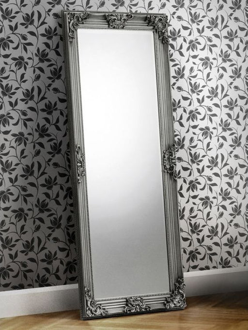 Rococo Pewter Lacquered Carved Rectangular Leaner Mirror - 80cm x 170cm