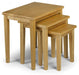 Cleo is a stylish and practical range of dining and occasional furniture which offers outstanding value for money. Its timeless design complements contemporary and traditional interior styles equally well. The Cleo natural oak nest offers great versatility, comprising 3 tables crafted from solid rubberwood and finished with a light oak stain. Three tables offer great versatility Durable solid wood construction Part of Julian Bowen's Cleo dining and occasional collection 12 month product guarantee