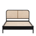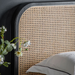 Dramatic statement style sure to become a modern classic. The solid black stand oak frame combines comfort and style ease, with curved corner headboard featuring a woven rattan panel creating a stunning stand out contrast of colours and materials. Available in 4'6" and 5" sizes.