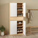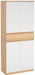 Introducing the Naia Shoe Cabinet: Style and Function in Perfect Harmony Discover the perfect storage solution for your beloved shoe collection with the Naia Shoe Cabinet. With its sleek design and clever functionality, this cabinet is designed to keep your shoes organized and your space clutter-free. Featuring four spacious doors and a convenient drawer, it effortlessly provides ample storage space for all your favourite pairs. The beautiful combination of Jackson Hickory Oak and White finishes adds a touch of elegance and versatility to elevate your home decor. Embrace organization and style with the Naia Shoe Cabinet, a perfect addition to your entryway or bedroom.