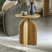 Designed to highlight the use of geometric design, with a nod towards retro style but in a more modern format, this beautiful side table features a lovely round top, with this form echoed on the tops of the legs. It is made using oak veneers and solids, where practical, with a natural matt finish. Matching pieces available.