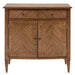 This stunning sideboard features rich tonal mid brown Mindy wood veneer marquetry and bronze beehive pull handles , creating a beautiful 'new traditional' look. With its timeless, elegant style and a modern touch the 2-door cupboard and 1 drawer make it a practical yet stylish storage solution.