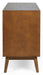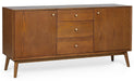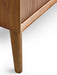 A gorgeous retro inspired style, the Lowry Large Sideboard is constructed from an exquisite cherry ash wood veneer with beautifully tapered legs. Featuring 2 wide soft-touch cupboard doors and 3 pull-out drawers. Creating the perfect ample space for storing essentials. Complemented by golden framed knobs, providing the perfect timeless staple to any occasional space. A gorgeous retro inspired design Constructed from an exquisite cherry ash wood veneer Features two wide soft-touch cupboard doors and interior shelving and three pull-out drawers, ideal for storing necessities Will provide character and depth to any occasional space 12 month product guarantee.