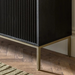 Ideal as a stand-alone piece or paired with other items from the collection, this eye-catching sideboard offers a sophisticated apartment living look. The solid mango wood doors and drawer fronts have a stunning black finish and are routed to create a ripple effect which catches the light, with the ripples running vertically on the doors and horizontally on the drawers to add even more interest. To complete the look, the black mango wood is combined with a gold-finish metal base, to add a touch of glamour.