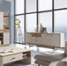 The living room and dining room are a space where you can spend time with your loved ones. Daily relaxation, shared meals with the family, as well as parties and feasts in the company of friends are special moments that require reliable and stylish room equipment. As part of the tasteful Rivero series, dedicated to the living room and dining room, there is an extremely spacious sideboard with drawers and full fronts, concealing wide shelves. You can fit everything in it. The sideboard with three drawers and two closed zones behind the fronts full of shelves (wide, behind the two-door front and narrower behind the single-door front) is a piece of furniture set on an effective, modern looking metal frame, powder coated in black. Black metal handles and light brown shades of the body and fronts (Dark Flagstaff Oak and Silicon Gray) match it. The cabinet is made of laminated chipboard. An impressive, large piece of furniture is perfectly used in spacious interiors, such as a dining room, connecting the kitchen with the living room. The Rivero sideboard fits into rooms decorated in a loft and modern style. It can be used in a boho or vintage style. Create unique interiors and use the functionality of the Rivero series every day. The furniture has hinges and soft-close guides and must be attached to the wall.