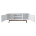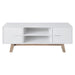 This partical board TV unit offers a modern, minimalist look that is perfect for any living space. The elegant white finish and clean lines blend in with any d̩cor; the large surface top provides ample storage and display space. The open shelves can accommodate any media unit, and the drawers provide plenty of space to keep DVDs and game consoles. Simple yet fashionable, this unit adds a stylish edge to your home.