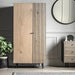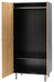 Add a contemporary look to a room with this stylish wardrobe. The carcase has a black finish with a pressed woodgrain effect to create a premium look. The door fascias are real oak woodgrain veneer with a feature black line pattern. A black metal underframe and door handle complete the look. Matching items available