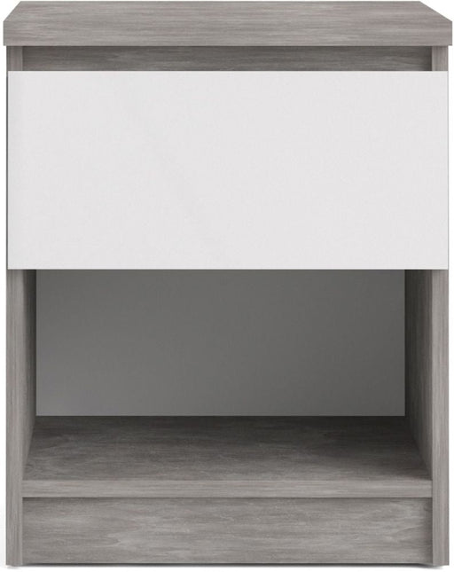 Naia Bedside 1 Drawer 1 Shelf in Concrete and White High Gloss