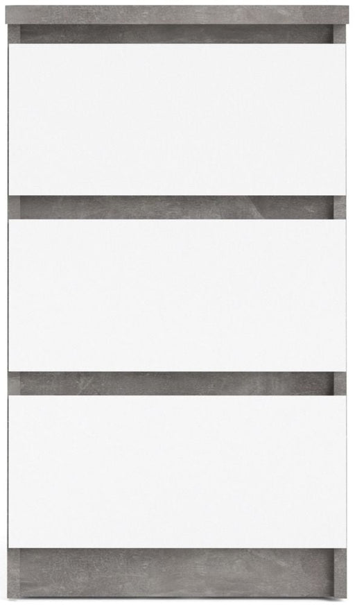 Naia Bedside 3 Drawer in Concrete and White High Gloss