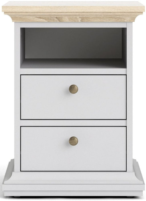 Chelsea Bedroom 2 Drawer Bedside in White with Truffle Oak Trim