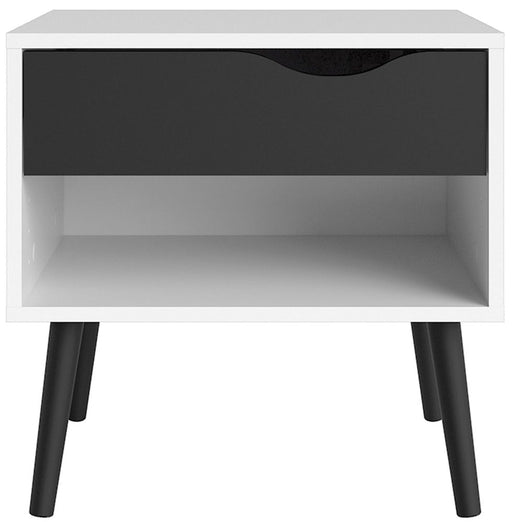 Furniture To GoIn stockOslo Bedside 1 Drawer in White and Black Matt. Alluding a retro modern charm, the Oslo collection has an authentic scandinavian appeal with real st...