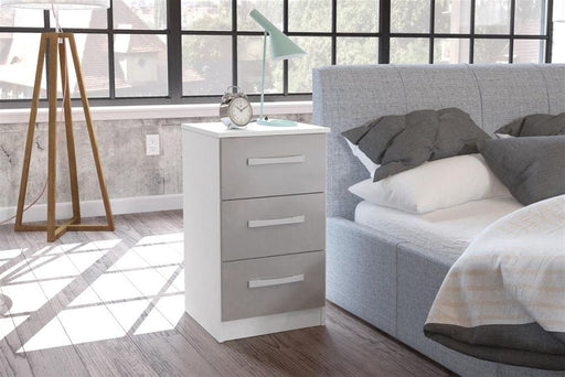 Lynx White and Grey Bedside Cabinet - 3 Drawers