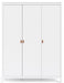 A modern large wardrobe with three doors in a striking design complete with brown leather tab handles, also available in contrasting matt black