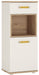 4KIDS 1 door 1 drawer narrow cabinet in light oak and white high gloss with lemon handles. The 4KIDS collection is perfect for all age groups, finished in light oak and stunning white high gloss. Handy for limited floor area this 1 drawer 1 door unit has interior adjustable shelf. Laminated board (resistant to damage and scratches, moisture and high temperature) Easy glide metal drawer runners Adjustable hinges on all doors Decorative gently rounded MDF mouldings High gloss finish on fronts Easy self assembly