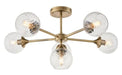 Twisted glass shades give this ceiling light a decorative edge. This 6 light semi flush is perfect for casting light around rooms with low ceilings, finished in a stunning antique brass plate. Matching items also available to complete the look.