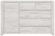 Angel 1 Door 2+3 drawer Chest. The Angel collection is perfect for all age groups, finished in a modern hard wearing white crafted Oak melamine. This compact 119cm wide chest has lots of storage with 2 small over 3 wide drawers and cupboard with interior shelf. Laminated board (resistant to damage and scratches, moisture and high temperature) Easy glide metal drawer runners Adjustable hinges on all doors Decorative gently rounded MDF mouldings Easy self assembly