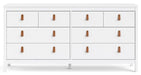 A modern chest of drawers in a striking design complete with brown leather tab handles, also available in contrasting matt black High quality laminated board (resistant to damage and scratches, moisture and high temperature) Made from PEFC Certified sustainable wood Easy self assembly Made in Denmark Easy gliding drawer runners