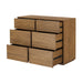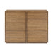 Charlton chest of drawers in oak & oak veneer, MDF with oak/walnut finish. Ribbed front panels. 6 drawers on metal runners, soft close push drawers. Visible grain.