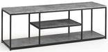 Simplistic in design with a contemporary style, the Staten TV Unit will add a stunning industrial look to any living and dining area. Constructed from a black coated metal frame, complemented by a striking concrete effect tops, to create a very stylish, modern product. Part of the Julian Bowen Staten Dining and Occasional Collection.
