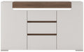Toronto 2 Door 3 Drawer Sideboard (inc. Plexi Lighting). This 2 door 3 drawer sideboard has many features including soft close doors and drawers, internal LED lighting and adjustable shelves. White high gloss fronts with Sanremo oak inset Inc. plexi lighting Laminated board (resistant to damage and scratches, moisture and high temperature) Modern handle free solution Soft close drawer runners Soft close door hinges Adjustable hinges on all doors Easy self assembly