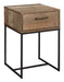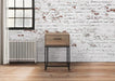 Urban Rustic Wood Effect Industrial Style Narrow Bedside Cabinet - 1 Drawer